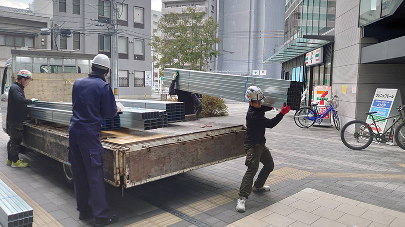 株式会社JPSでは、施工の専門技術者(職人)を資材運搬という余分な仕事から解放し、本来の作業に専念できる環境作りを整えます。