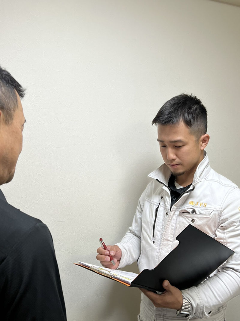 株式会社JPSは労働災害保険に加入しており、作業員が万が一の事故にあったときのためのサポート体制も万全です。依頼主様への負担も最小限にとどめ、迅速かつ的確な対応ができるようにいたします。